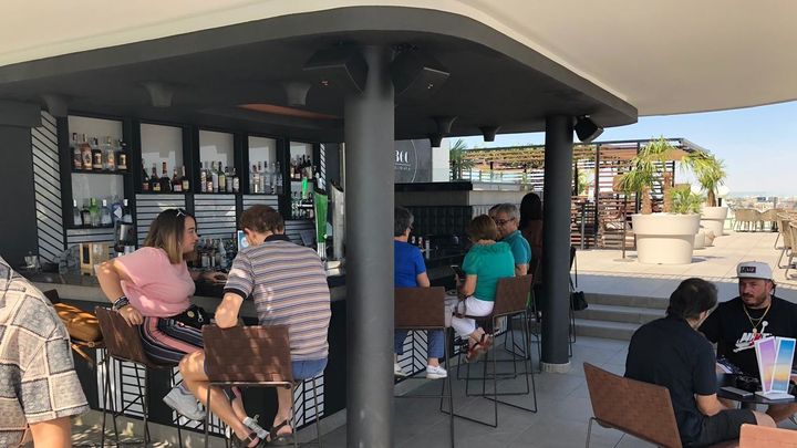 En la terraza encontramos dos zonas de bar, pero cabe destacar que hay servicio a mesa por si no queremos esperar en una de las dos barras e ir disfrutando de las vistas a la ciudad.