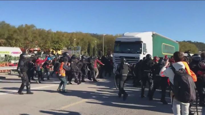 Mientras, en Barcelona continúan los cortes en algunos de los principales accesos a la ciudad, aunque a causa de lo avanzado del día no hay apenas problemas de tráfico en la capital catalana.