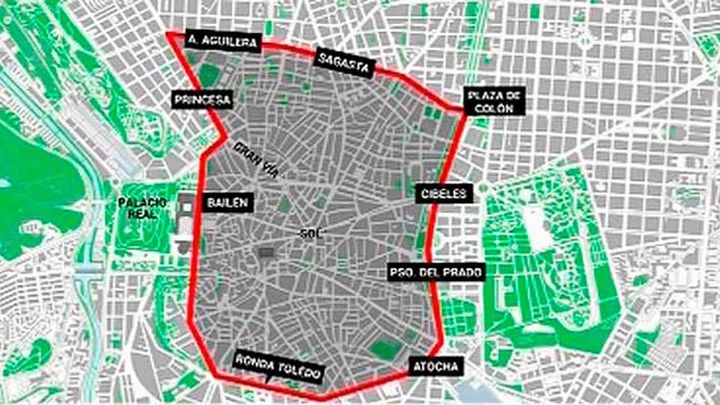 Madrid Central establece un perímetro delimitado por Alberto Aguilera, Carranza, Sagasta, Génova, Paseo de Recoletos, Paseo del Prado, Ronda de Atocha, Ronda de Valencia, Ronda de Toledo, Gran Vía de San Francisco, Bailén, Plaza de España, Princesa y Serrano Jover.