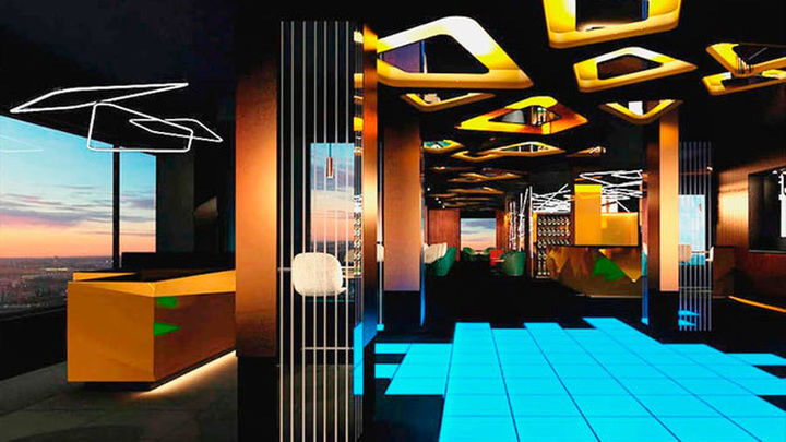 El primero de ellos, llamado ’De Madrid al Cielo’, ocupa la planta 26 y está ambientado en la Movida Madrileña, con luces de neón en sus paredes; y el segundo, en la planta más alta del edificio, cuenta con una pasarela de cristal que permite caminar por el cielo de Madrid.