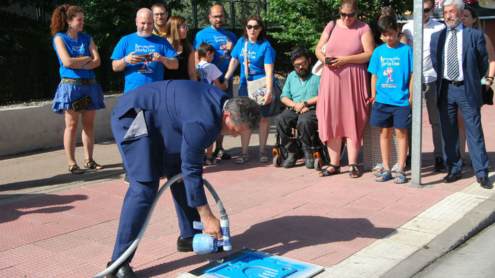 El alcalde Parla, Ramón Jurado Rodríguez ha estado presentes en la primera señalización con pictogramas, la del paso de cebra del Centro de Educación Especial María Montessori. En el acto han acompañado a miembros de las Asociaciones Parla TEA y Vida TEA, entidades formada por padres, madres, familiares y amigos de personas dentro del espectro autista.