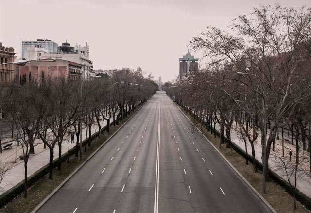 Ni 'The Walking Dead' ha llegado a Madrid ni se trata de la segunda parte de 'Abre los ojos'. Es todo producto del laborioso trabajo de Ignacio Pereira, director creativo de una agencia de publicidad, que ha creado escenas imposibles del Madrid actual, con algunos de los puntos más bulliciosos de la ciudad casi completamente vacíos. Casi, porque en las imágenes siempre queda una inquietante única persona.