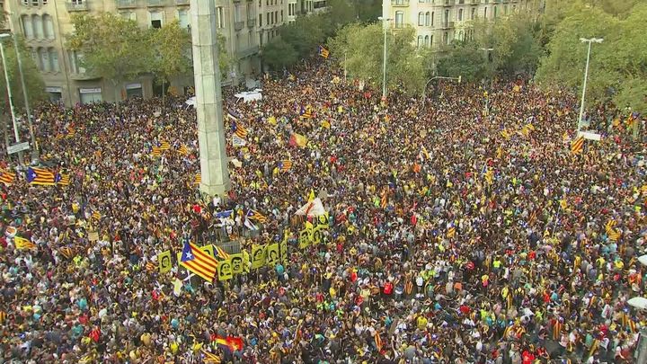 Cataluña vive este viernes 18 de octubre una huelga general como protesta de los independentistas a la sentencia del procés. Miles de personas se han reunido en Barcelona en una gran manifestación.
