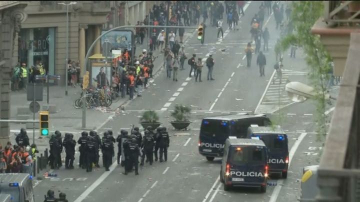Ya se están produciendo acciones violentas en la vía Layetana, que están provocando las primeras cargas policiales.