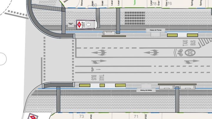 Cambiando de ubicación, el que llega hasta la plaza de Callao y, ampliando la anchura de los pasos existentes en los números 28,32, 42 y 46.