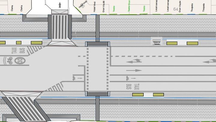 El director de cine Alejandro Amenábar ya lo anticipaba en Abre los ojos: una Gran Vía peatonal con mayor vegetación, una iluminación distinta y semáforos novedosos. Recolocando el mobiliario, situado de manera que sirviese como una doble función de seguridad y comodidad.