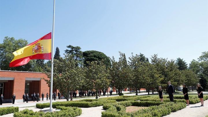 En el Palacio de la Zarzuela, los Reyes, acompañados por sus hijas, la princesa de Asturias y la infanta Sofía, han guardado el minuto silencio, de acuerdo con el real decreto de luto nacional aprobado este martes por el Gobierno.