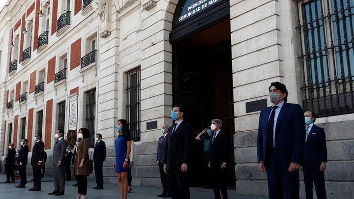 Y también en la sede de la presidencia regional. En la Puerta del Sol, Isabel Díaz Ayuso ha encabezado el duelo, flanqueada por los miembros de su ejecutivo. El acto ha concluido con el himno de España y una lluvia de aplausos.