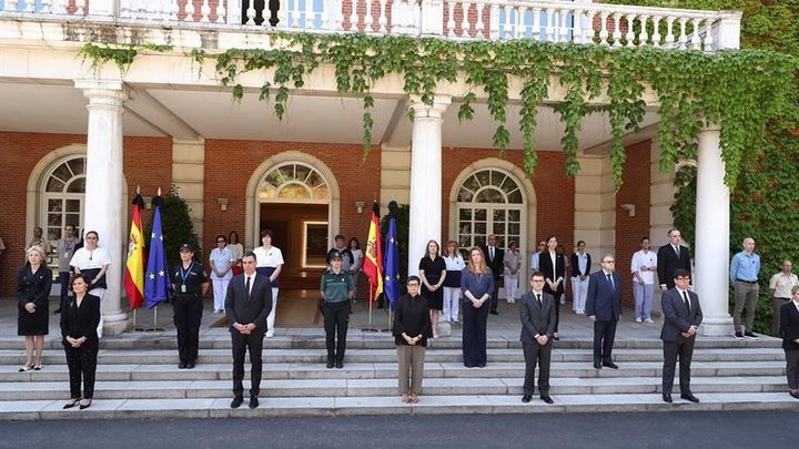El presidente del Gobierno, Pedro Sánchez, ha presidido el emotivo momento de duelo en el Palacio de La Moncloa.