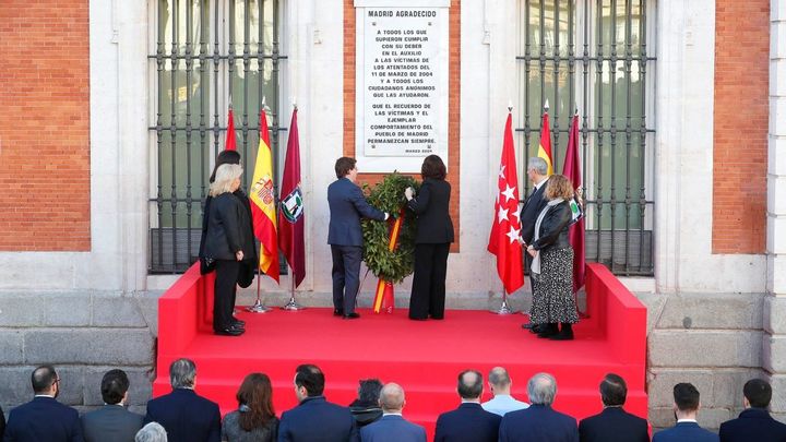 El acto ha comenzado a las 09:00 horas junto a la fachada principal de la Real Casa de Correos de la Puerta de Sol, sede del Gobierno regional, frente a la placa conmemorativa en recuerdo a los fallecidos, a los heridos y a quienes les socorrieron aquel día.