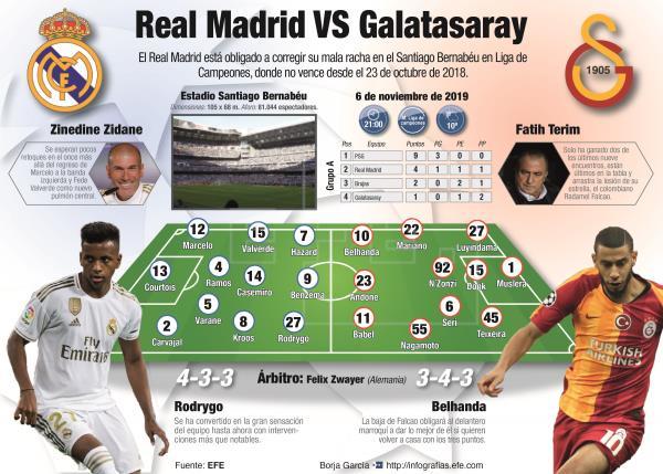 Enfrente tendrá un Galatasaray que llega al Santiago Bernabéu con la esperanza de lograr un buen resultado que le permita tener opciones de acabar tercero de grupo y entrar en la Liga Europa.