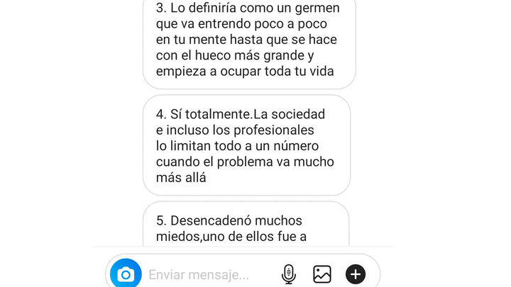 Los mensajes en su mayoría eran de chicas, pero, también respondía un chico: "Me da vergüenza pero me obsesioné con estar en forma, me obsesioné con la comida."