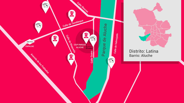 Aluche cuenta con 65.000 habitantes y actualmente funcionan 12 casas de apuestas: “Queremos proteger nuestro barrio”, señala una vecina. “Las personas mayores se gastan su jubilación en estos locales, la adicción al juego es una enfermedad”, explica. Los vecinos temen que, con la apertura de un nuevo local, aumente la delincuencia en la zona.