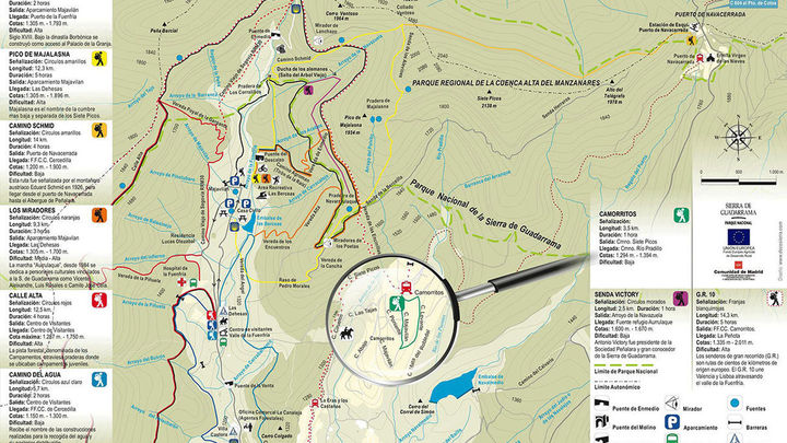 - El Puerto de Cotos es un punto de encuentro conocido por todo aficionado a la montaña. Situado a 1.880 metros de altitud, se puede llegar a él tanto en coche como en autobús y cercanías. Aquí encontramos el Centro de Visitantes Peñalara, donde pueden informarnos de los senderos y actividades que podemos realizar en la zona.