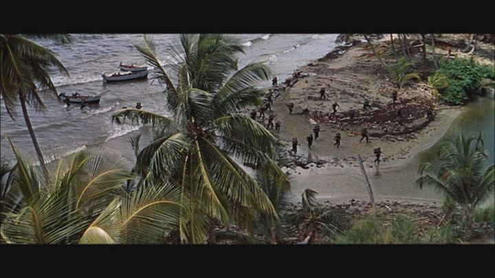 El que menos contento estaba, de entrada, era Mitchum, como siempre. Acababa de volver a casa desde Tobago, donde había filmado una de aventuras con Rita Hayworth con la que se había llevado de aquella manera, cuando le propusieron la de esta noche que se rodaría en Tobago otra vez. Calor, humedad y mosquitos peligrosos. Llegando allí se enteró de que el papel se lo habían ofrecido primero a Brando. Y se puso de morros. El primer día de rodaje, a las 9 de la mañana, ya estaba borracho en su tienda a todo aquel que era enviado para avisarle le obligaba a tomarse dos o tres chupitos de vodka con lo cual el número de borrachos se multiplicaba. Huston consiguió sacarlo de allí y subirlo a la balsa para la toma de su llegada a la isla. Y como castigo, pretextando unas cosas u otras, le tuvo al sol hasta media mañana. Cuando acabó la filmación, se miraron, se echaron a reír y desde entonces fueron inseparables. Tanto que, para Mitchum es la mejor de cuantas hizo en su dilatada carrera. Y la más difícil.