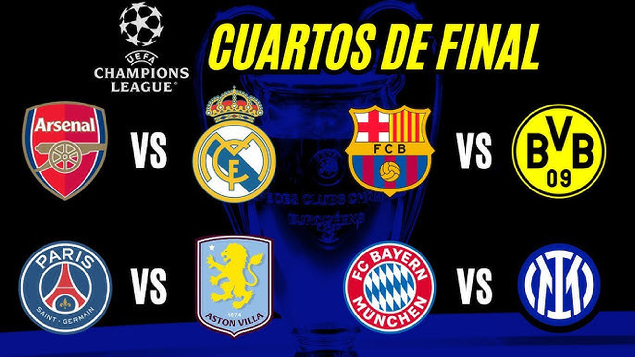 - Arsenal-Real Madrid, Barça-Borussia, Bayern Munich-Inter, PSG-Aston Villa, en cuartos de final