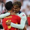 La advertencia se convirtió en realidad pocos minutos después, cuando Dani Olmo, el reemplazo de Pedir y hasta ahora venerado en tierras alemanas, remató al fondo de la red el preciso centro del joven Lamine. Los pocos y valerosos españoles disfrutaron de lo acontecido en territorio comanche. Entre los alemanes creían los nervios. Alguno, incluso, no se tomó bien la celebración del tenía al lado.