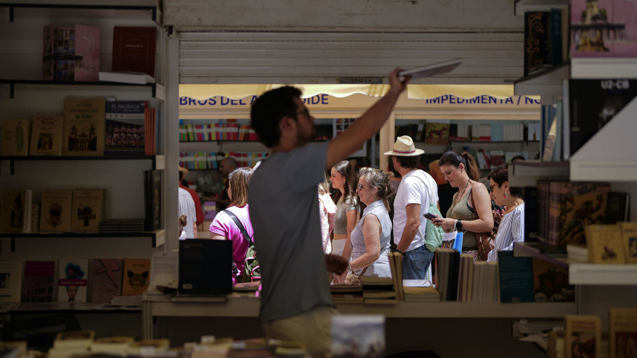 El buen tiempo llena de madrileños la feria del Libro en El Retiro