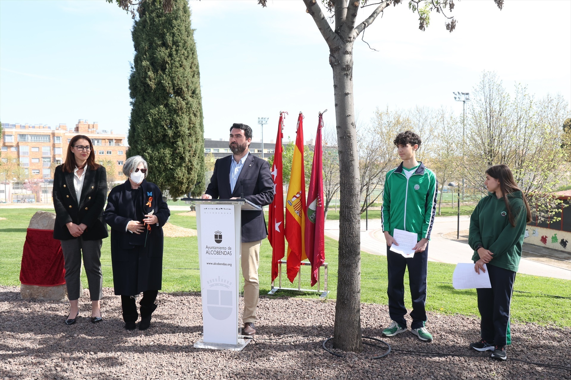 Alcobendas ha inaugurado este jueves en el parque de Fuentelucha un monumento dedicado a la memoria de las víctimas de accdidentes de tráfico, con un monolito y una placa en recuerdo de los afectados.