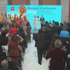 Al igual que ocurrió el año pasado, hay mujeres que han asistido vestidas de la 'compaña feminista', con túnicas y máscaras blancas. Han portado carteles en recuerdo de los feminicidios que han ocurrido en España en lo que va de 2024, con el nombre de la víctima, la edad y el lugar de donde eran.