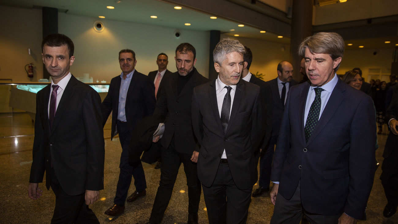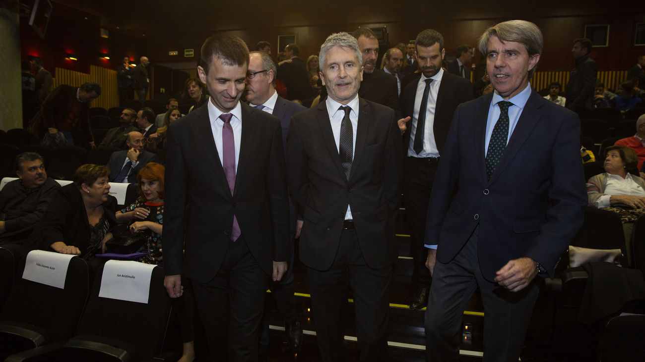 El ministro del Interior, Fernando Grande-Marlaksa, el presidente de la Comunidad de Madrid, Ángel Garrido, y el concejal delegado de Coordinación Territorial, Nacho Murgui, participaron este miércoles en la presentación del documental 'El relato del silencio' junto a víctimas de ETA, GRAPO y del atentado del 11M.
