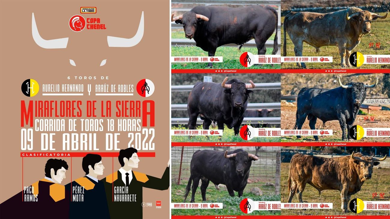 El encaste Gamero-Cívico de los toros de Araúz de Robles contrasta con la procedencia veragüeña de los toros del ganadero madrileño Aurelio Hernando, que el año pasado lidió un toro de gran clase en Chinchón durante la primera edición del certamen. Ambos hierros pugnarán por ganarse su hecho en la próxima Copa Chenel y la presentación de los toros será uno de los grandes alicientes de la tarde. ¿Ramos? ¿Pérez- Mota? ¿Navarrete? Uno de ellos será el que apunte su nombre junto al de David Galván y Amor Rodríguez para la siguiente fase.
