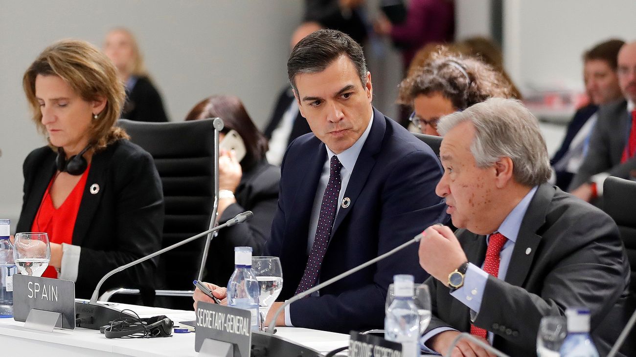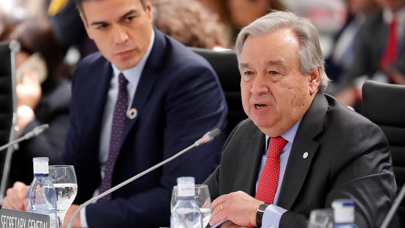 El presidente del Gobierno español, Pedro Sánchez,iz., y el secretario general de la ONU, Antonio Guterres