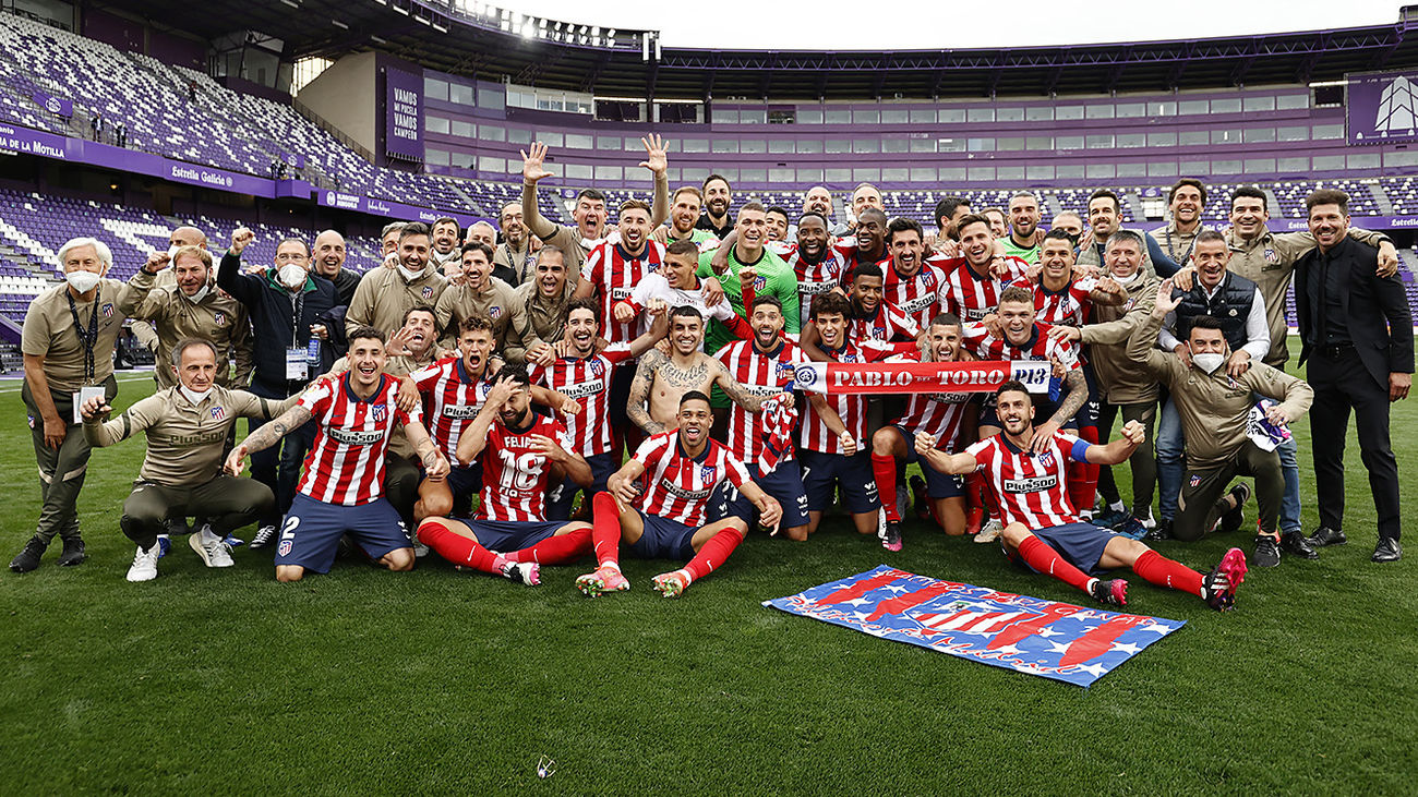 El Atlético de Madrid se ha proclamado campeón de LaLiga Santanter 2020-21, el undécimo título liguero de su palmarés tras derrotar 1-2 al Real Valladolid en el último partido del campeonato con goles de Ángel Correa, en el minuto 57, y de Luis Suárez en el 67. en el 67.