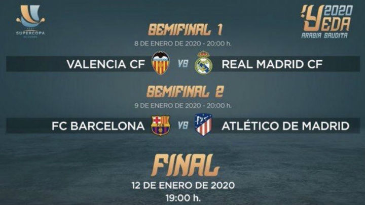 Los cuatro equipos participantes serán el Barcelona, campeón de LaLiga y finalista de la Copa del Rey, el Real Madrid, que llega como semifinalista copero con mejor historial, el Atlético de Madrid, subcampeón de LaLiga, y Valencia, que logró su plaza al ganar la Copa del Rey.