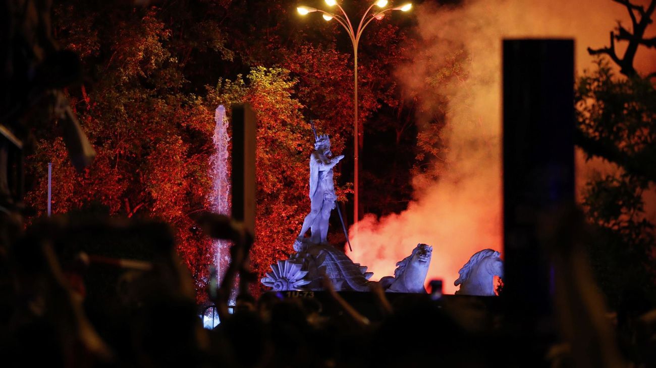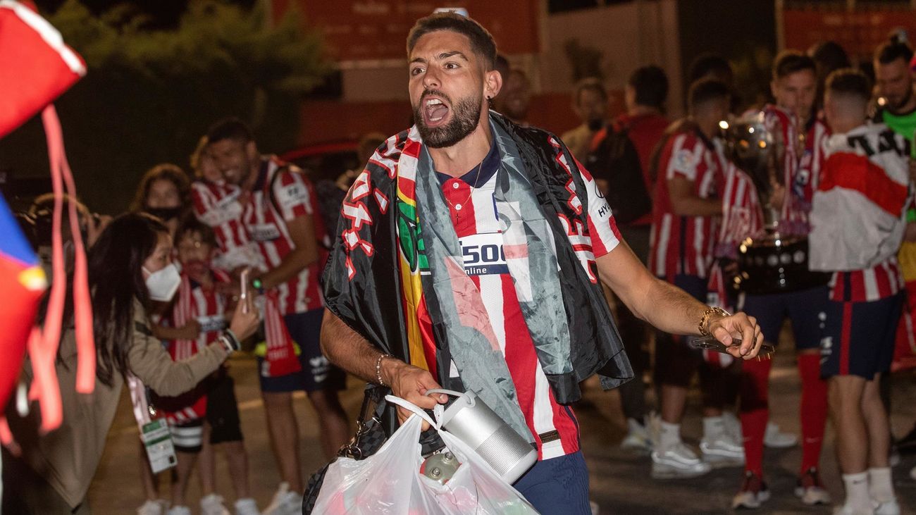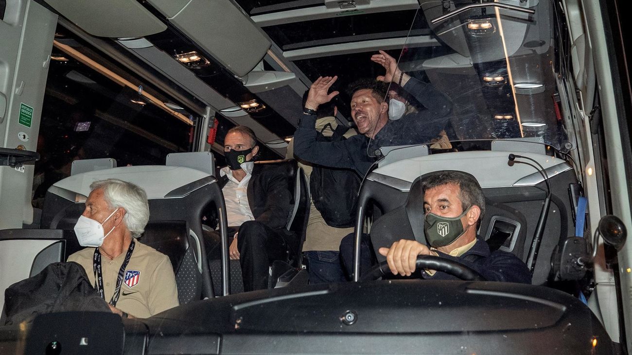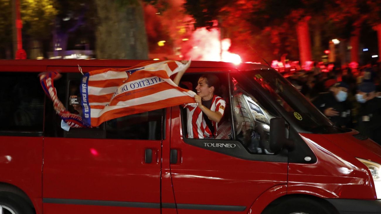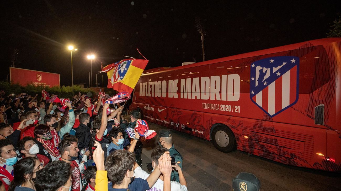 Jugadores y aficionados del Atlético de Madrid celebraron este sábado el título de Liga tras el último partido de LaLiga Santander que Real Valladolid y Atlético de Madrid jugaron en el estadio José Zorrilla.