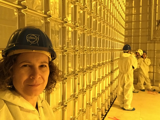 Inés Gil en el interior del prototipo de argón líquido para proyecto DUNE en el CERN |CIEMAT