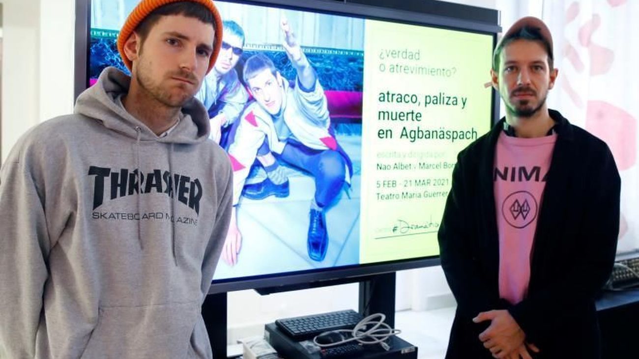 Los directores Nao Albet y Marcel Borràs, los llamados "enfants terribles" del teatro llegan al María Guerrero con su último proyecto 'Atraco, paliza y muerte en Agbanäspach', un proyecto ecléctico del que se sale con "subidón" y con el que quieren "rendir un homenaje al teatro".