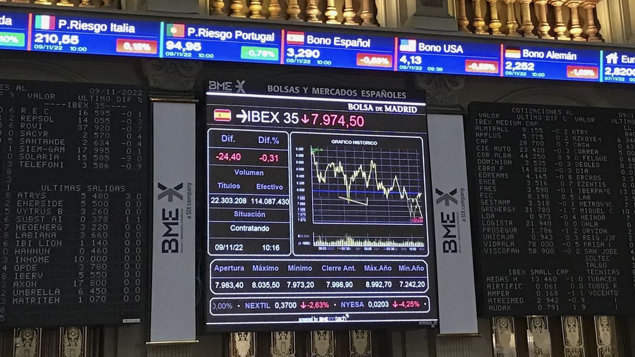 En los primeros compases de la sesión, el IBEX 35, el principal selectivo nacional, mantiene los 8.000 puntos. En concreto, cotiza en 8.003,10 enteros tras dejarse ese 0,49%. Las pérdidas del año alcanzan el 8,15 %.