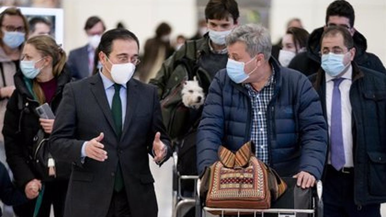 Albares ha aclarado que si desean regresar desde el país ruso se pongan en contacto con la Embajada y con los consulados de España en Moscú y en San Petesburgo. "Igual que hemos hecho con los ciudadanos españoles en Ucrania", ha asegurado el ministro después de que esta madrugada hayan llegado al aeropuerto de Adolfo Suárez Madrid-Barajas los 106 españoles evacuados del país ucraniano.