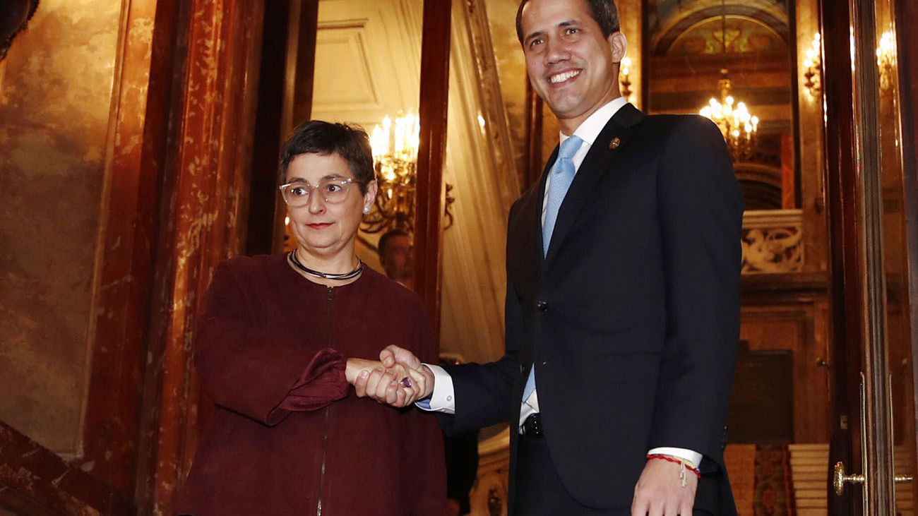 La ministra de Asuntos Exteriores, Unión Europea y Cooperación, Arancha González Laya, ha trasladado este sábado al presidente encargado de Venezuela, Juan Guaidó, el "pleno respaldo del Gobierno español" y el "deseo" del Ejecutivo de contribuir a que se convoquen elecciones con garantías democráticas.