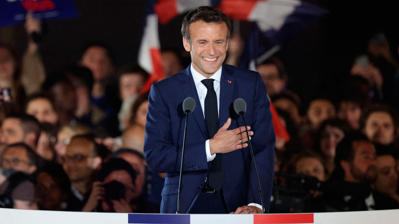 Macron ha sido reelegido este domingo al obtener entre 15,2 y 16,4 puntos de diferencia sobre su rival, la ultraderechsita Marine Le Pen, en la segunda vuelta de las presidenciales, según coinciden varias proyecciones de voto.