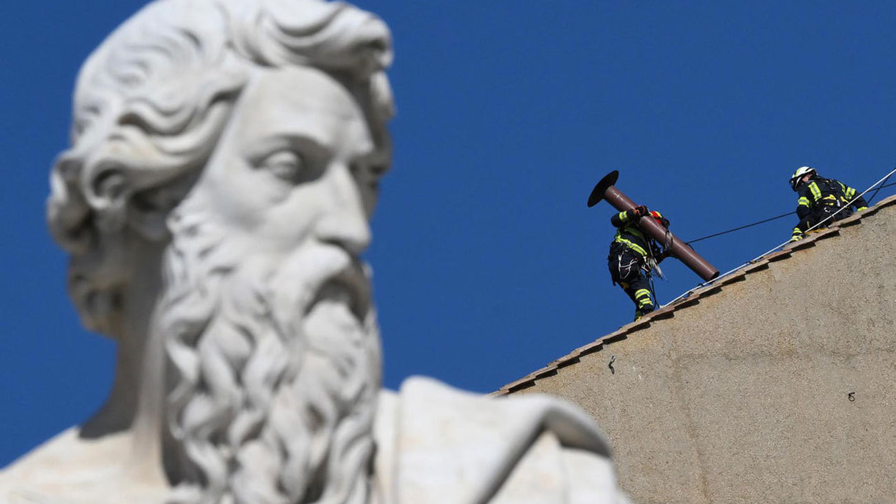 Los bomberos instalaron este viernes la chimenea en el techo de la Capilla Sixtina del Vaticano con motivo del Cónclave, que se iniciará el 7 de mayo, para elegir al nuevo Papa y por el que saldrá el humo negro o blanco que anunciará el resultado de las votaciones de los cardenales.