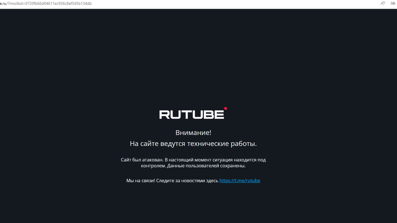 "Nos hemos topado con el mayor ataque informático en la historia de RuTube", según un mensaje en su canal en Telegram.