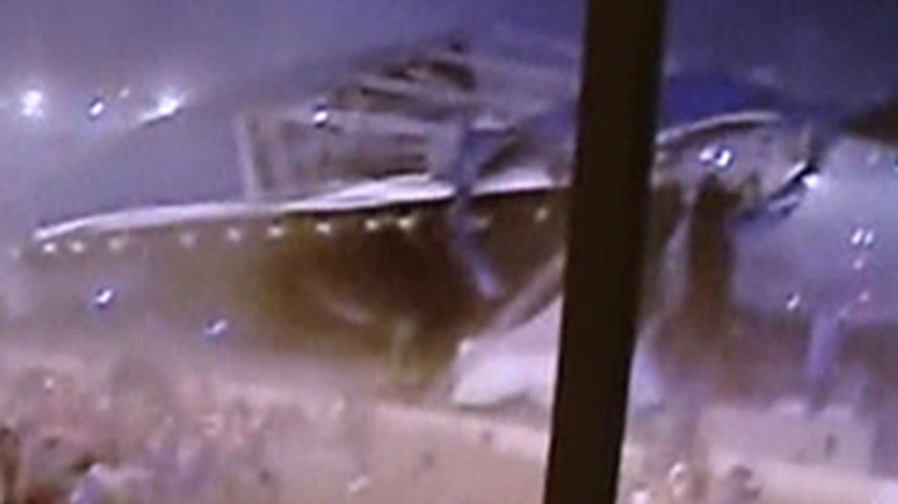 Los primeros indicios apuntan al mal tiempo como causa del desmoronamiento de la estructura. Un testigo presencial ha declarado a la cadena norteamericana CNN que "hubo una fuerte ráfaga de viento" y, seguidamente, "estalló el pánico entre la gente".