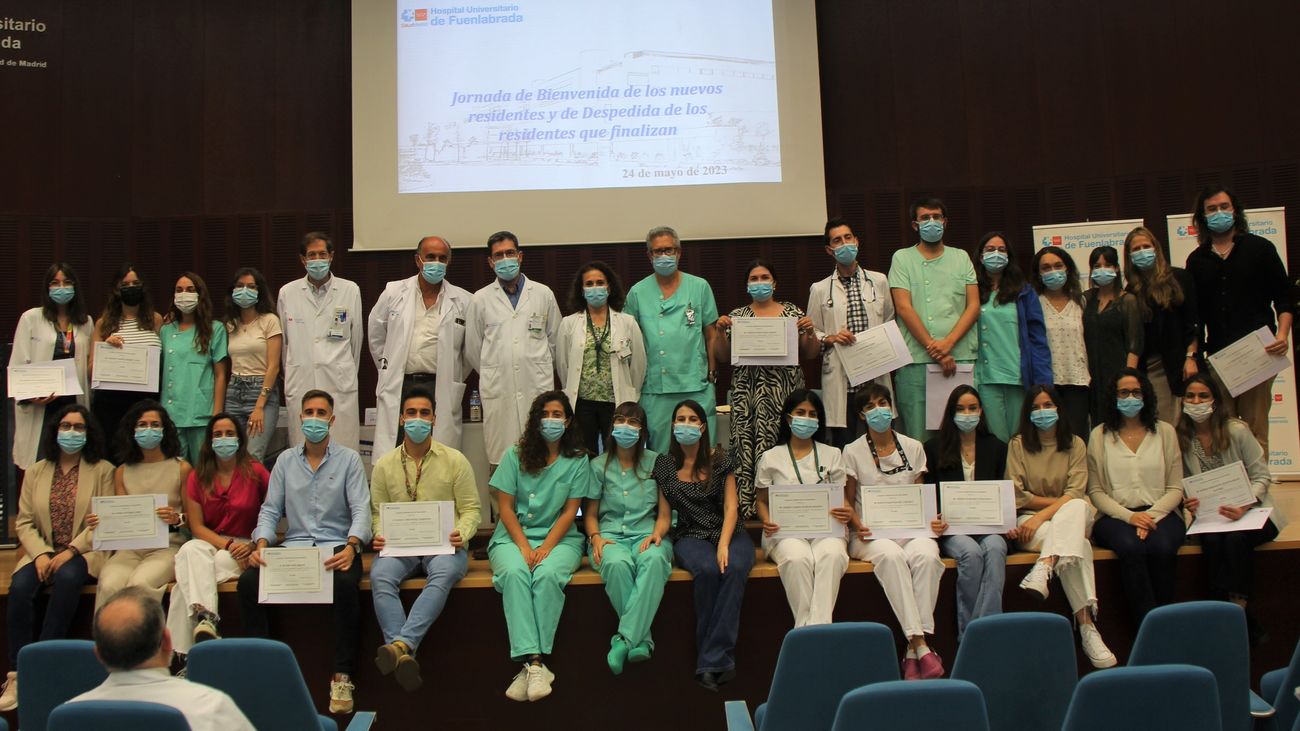 El Hospital Universitario de Fuenlabrada ha dado la bienvenida a los 52 nuevos residentes de Medicina (MIR), Enfermería (EIR), Farmacia (FIR) y Psicología Clínica (PIR) que han elegido este centro hospitalario de la Comunidad de Madrid para completar su formación sanitaria especializada, en una jornada en la que también se ha despedido a los 48 residentes que han completado su formación como especialistas.