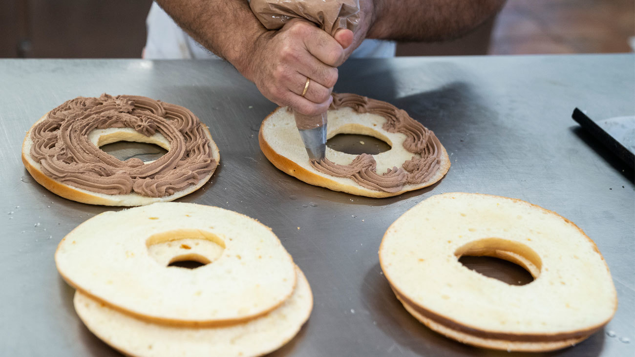 Cada artesano madrileño de pastelería tiene su receta y su toque personal para su Corona de la Almudena, con pequeñas diferencias en los ingredientes de la masa o en la decoración exterior y el relleno.