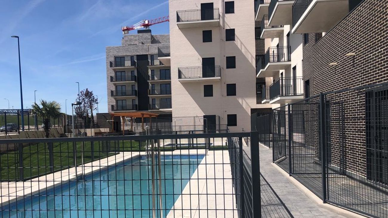 La urbanización está dotada con piscina de adultos y piscina infantil, zonas ajardinadas y mobiliario exterior con bancos, farolas y pérgola de madera. Son las primeras viviendas que se entregan en el barrio.