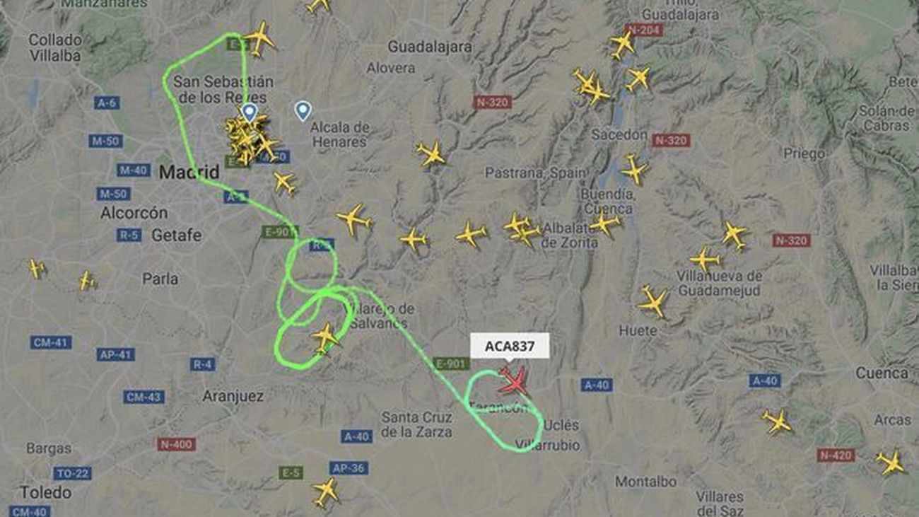 El aeropuerto de Barajas se prepara para el aterrizaje de emergencia del vuelo comercial AC837 operado por la compañía Air Canadá, que despegó de Madrid al mediodía y cuyo destino era Toronto. Actualmente necesita quemar el combustible de su deposito antes de poder aterrizar, con los problemas que tiene en su tren de aterrizaje y en el motor.