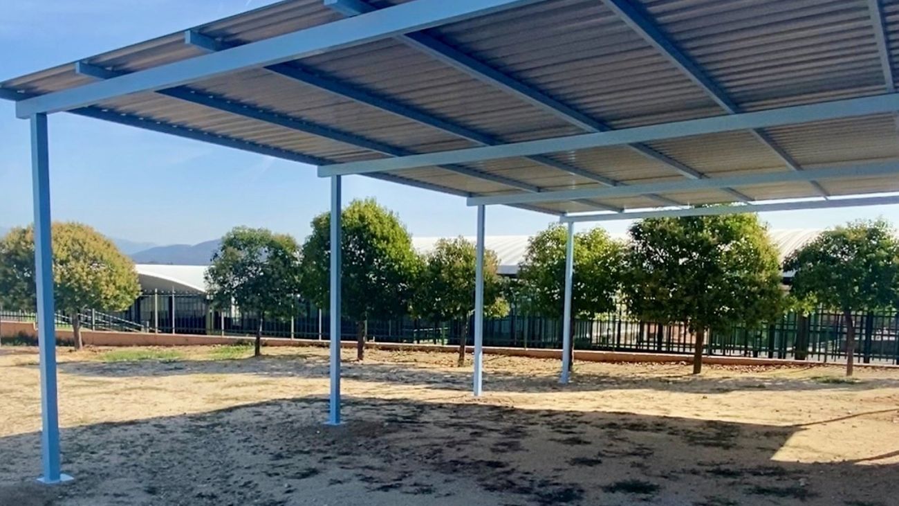 Pérgolas, techados o toldos para que los centros escolares estén preparadas de cara al próximo verano. El Ayuntamiento de Galapagar ha aprovechado el parón navideño para realizar los trabajos de instalación.