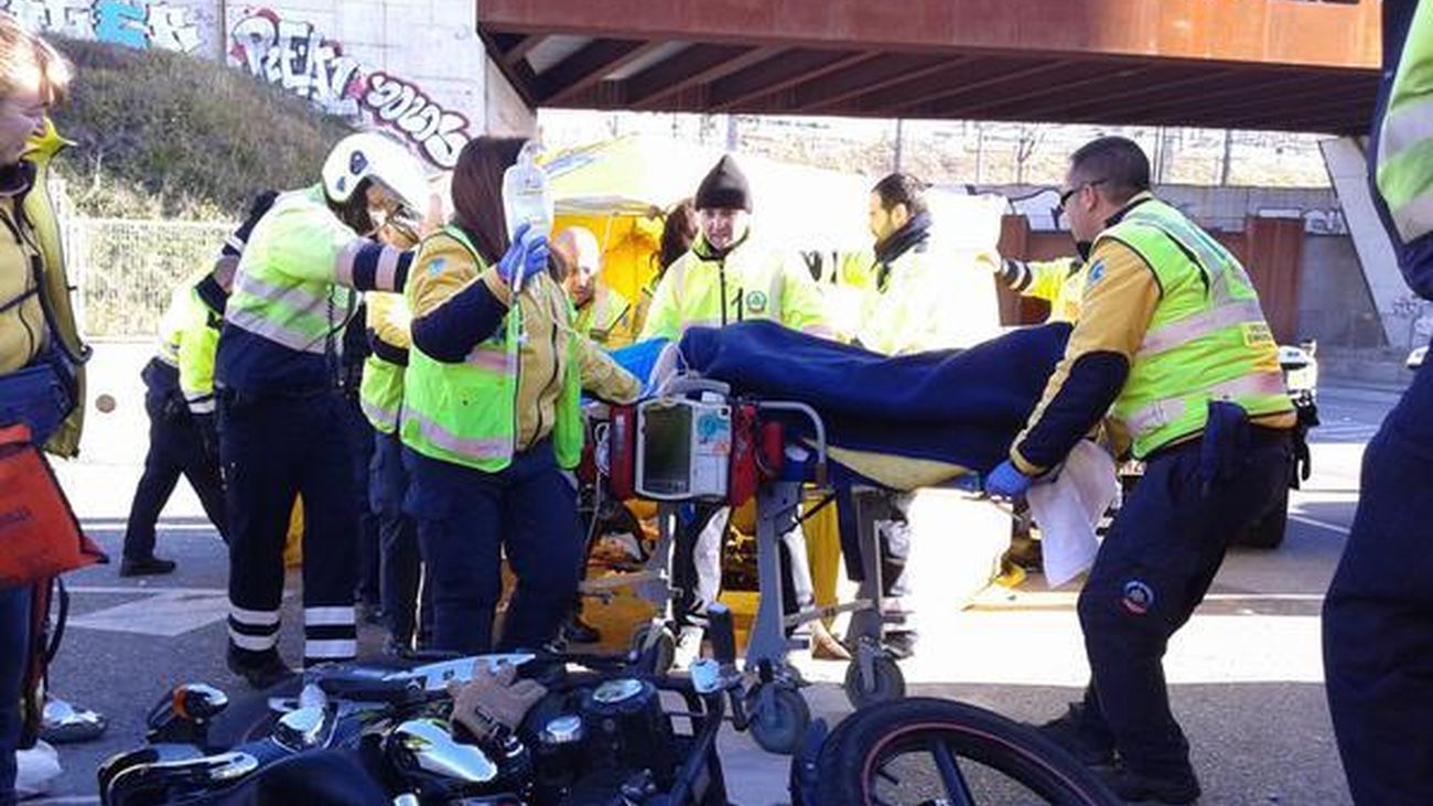 Un motorista de 36 años se encuentra herido muy grave tras colisionar en la calle Comercio con un taxi que estaba haciendo, al parecer, un cambio de sentido y ha invadido el carril contrario, ha informado a Europa Press un portavoz de Emergencias Madrid.