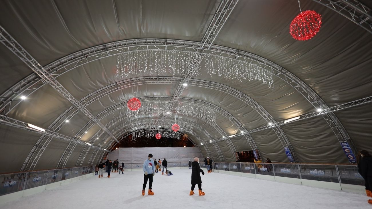 La Gran Pista de Hielo Cubierta de Fuenlabrada, ubicada en la zona del recinto ferial, abre este miércoles como parte del programa navideño puesto en marcha por el Ayuntamiento para estas Navidades.