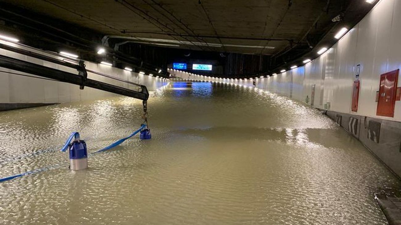 Hasta 14 dotaciones de bomberos trabajan en achicar el agua de la calzada central de la M-30 donde se ha acumulado hasta un metro de altura. En el ramal del anillo la inundación ha superado los dos metros de profundidad.