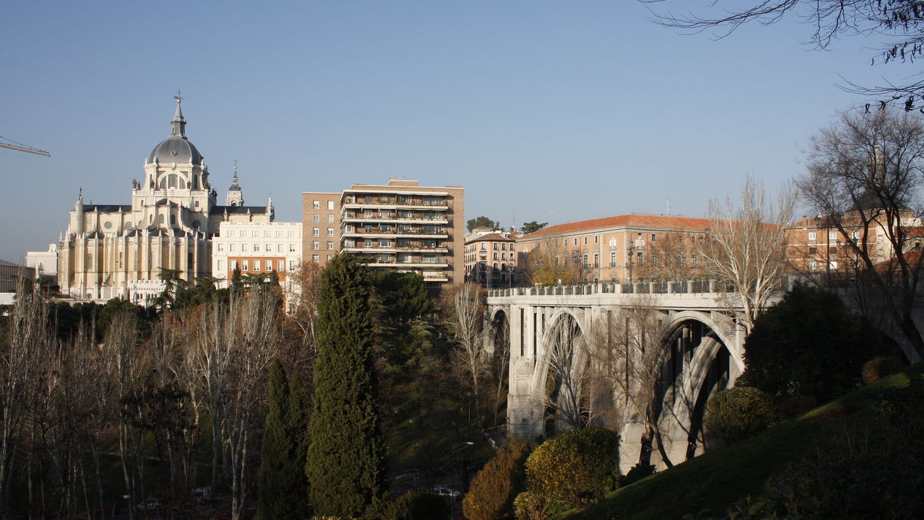 Desde el Mirador de las Vistillas podrás buscar estrellas con más facilidad, ya que está en lo alto de una colina. Con la catedral de la Almudena de fondo, lo encontrarás junto al viaducto de Segovia.