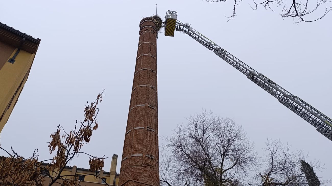 Las cigüeñas de la zona habían anidado en el borde superior del campanario del templo y con el tiempo su tamaño superaba los bordes de la construcción, por lo que había riesgo de que cayeran trozos a la calle o que derrumbara parte de la estructura del templo.