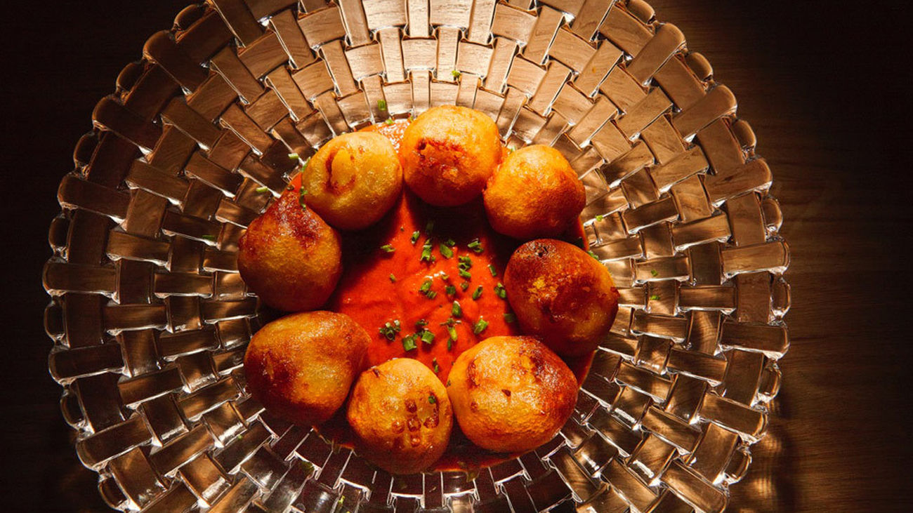"Queríamos ofrecer algo distinto, cambiar la textura", explica Martínez a Telemadrid.es mientras desgrana la elaboración del plato. La patata se convierte en un puré, en una crema, que adquiere el aspecto de un buñuelo. "Resulta crujiente por fuera y cremoso por dentro", detalla el chef.